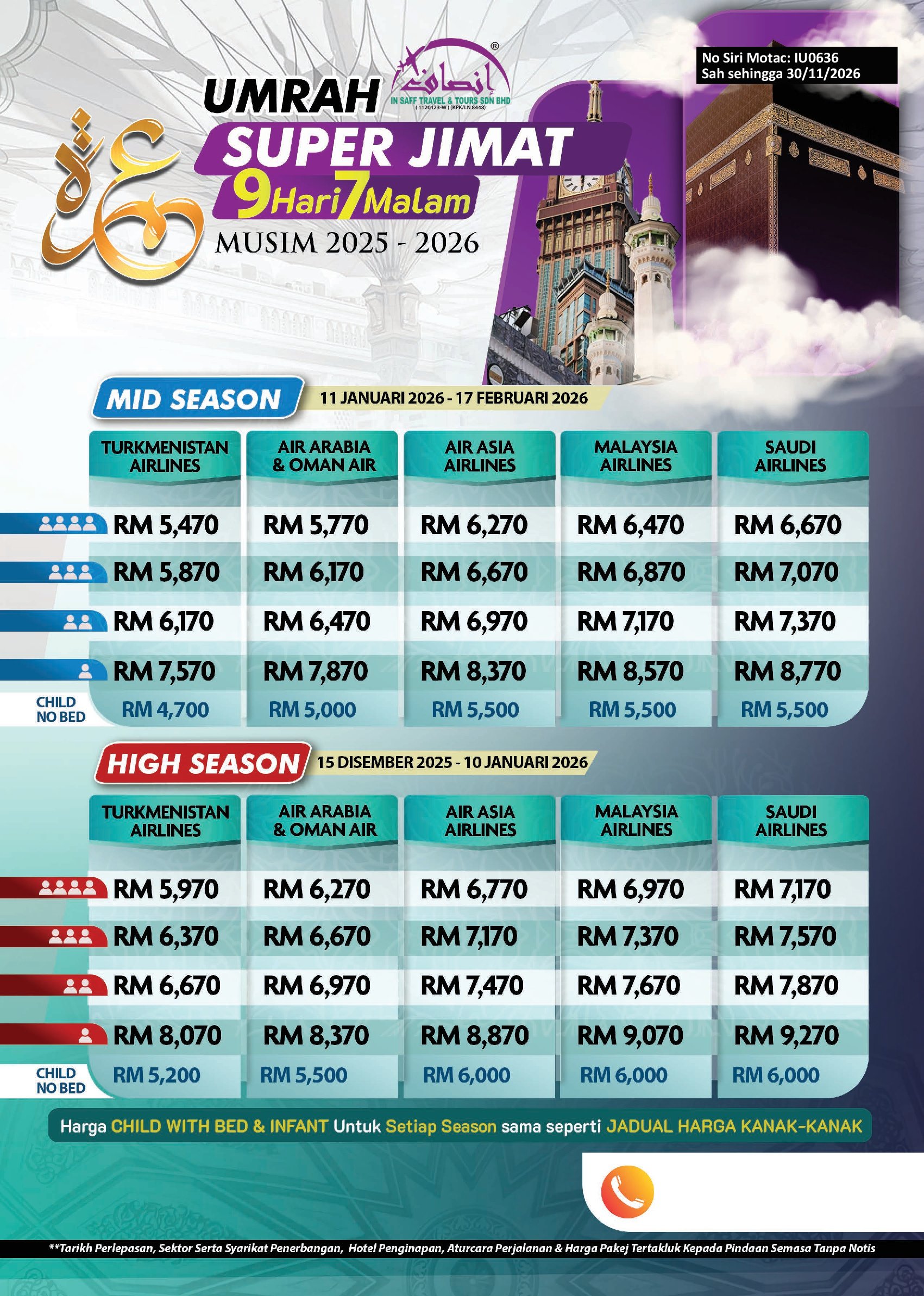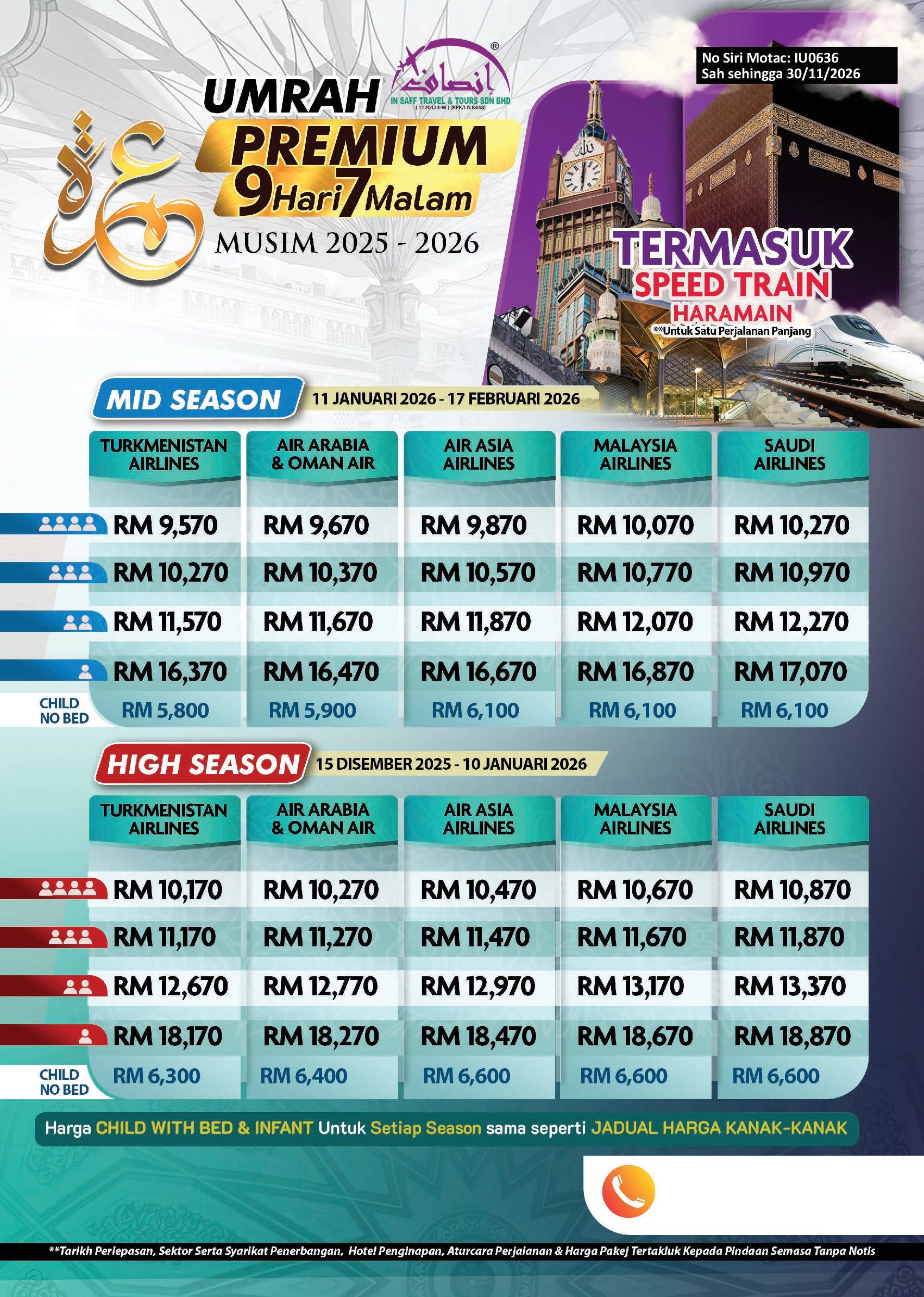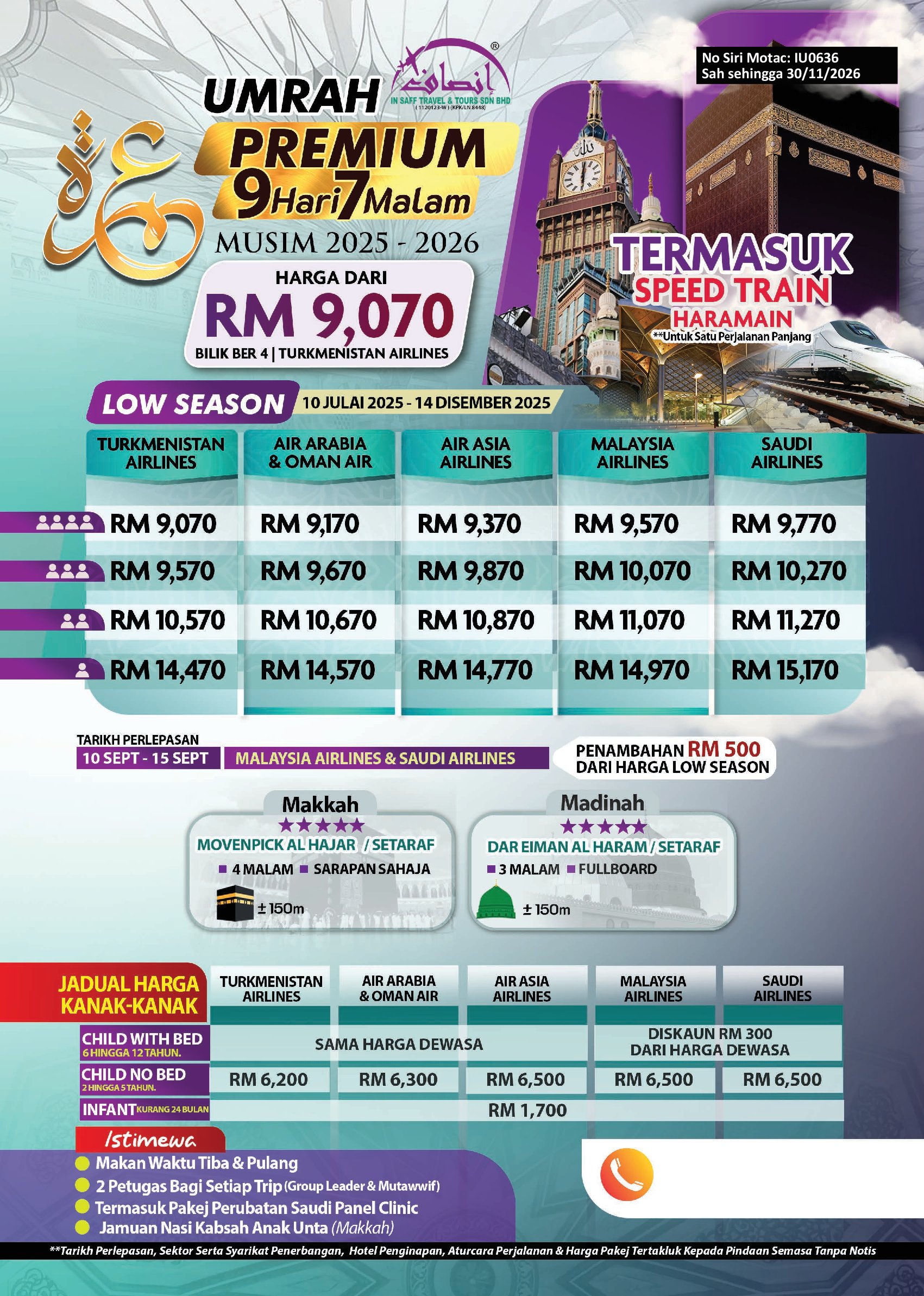 9 Hari 7 Malam - Premium